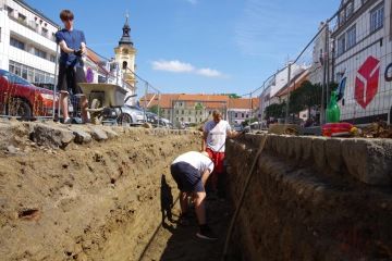 Práce archeologů na Velkém náměstí v Písku