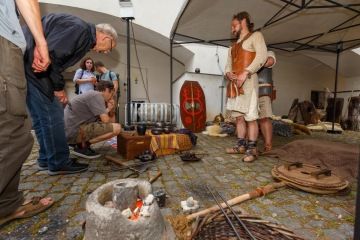 Lití bronzu / Tkaní na karetkách / Předení na přeslenu a tkaní na stavech / Ražba mincí / Ražba na kůži / Lukostřelba / Mletí na žernovu / Rozdělávání ohně starými technikami / Textil postaru