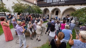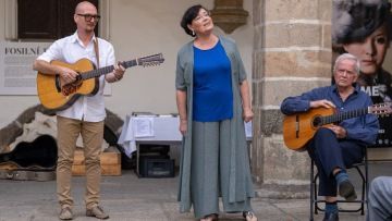 Vernisáž výstavy s hudebním doprovodem manželů Tichotových a Jiřího Holoubka (Spirituál kvintet) dne 13. září 2023